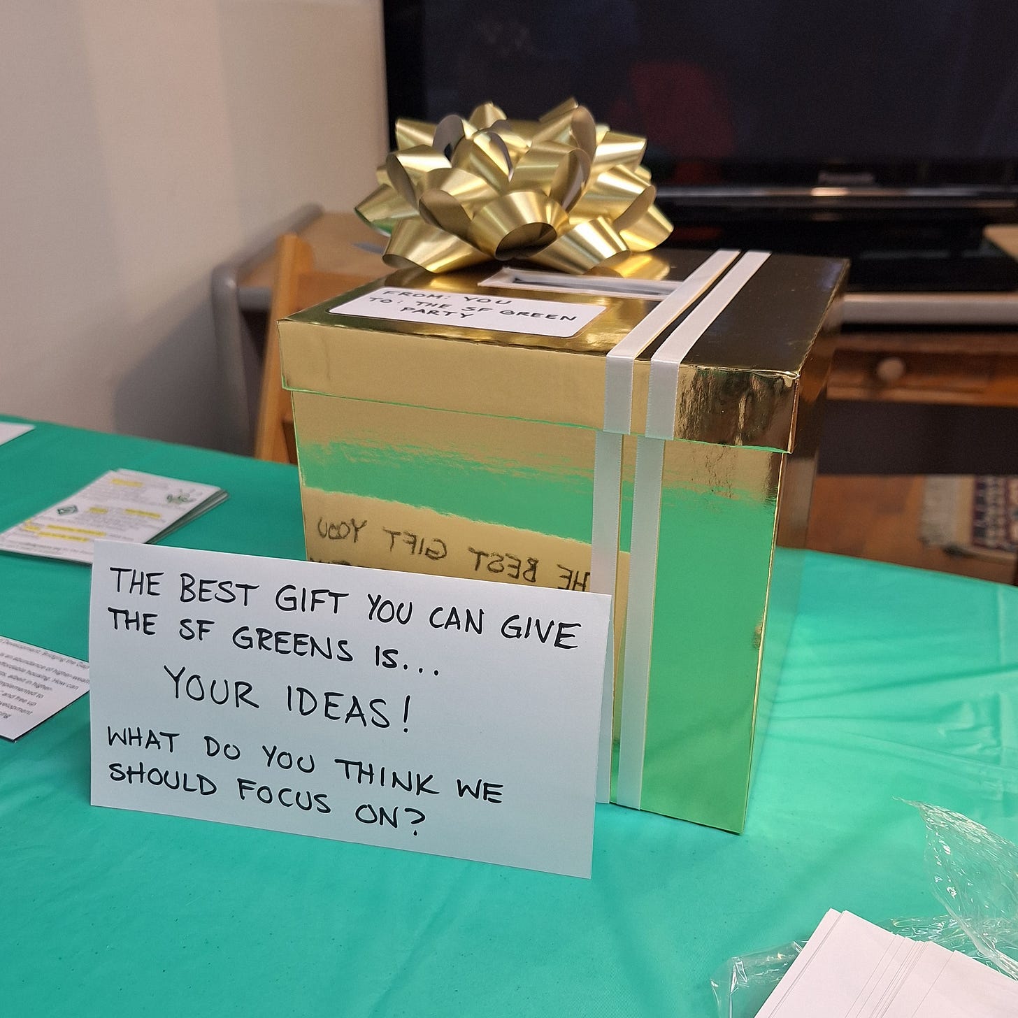 Personally, I will be focusing on building up my local chapter of the Green Party. I, along with another party member, recently hosted a holiday party for longtime and new San Francisco Greens. We also encouraged people to invite community members and invited some of our endorsed candidates. It was amazing to hear how the Green endorsement was rather significant for many of our endorsed candidates, such as Alan Wong, who will be serving as President of the City College Board in 2025 and beyond. I moderated a Socratic circle where each person was able to discuss their thoughts and feelings about the election in front of the entire group. It was lovely. It re-emphasized that having these political conversations in-person is absolutely crucial to building community.
